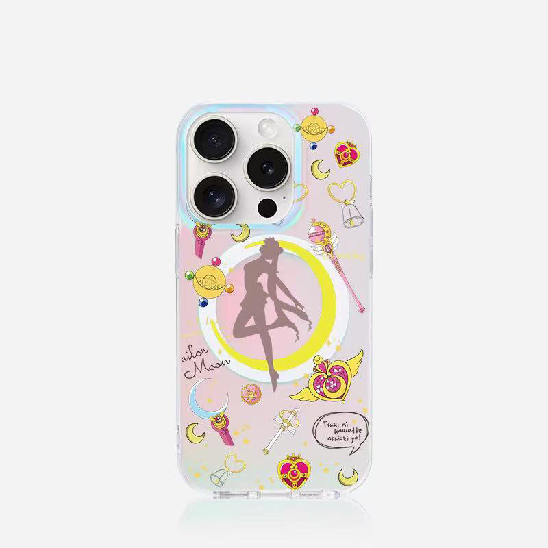 スマホケース レーザーカラー セーラームーン柄マグネットスマホケース 耐衝撃・防振性能に優れ、高級感あふれるスマホケースで、iPhone 11~17 に対応