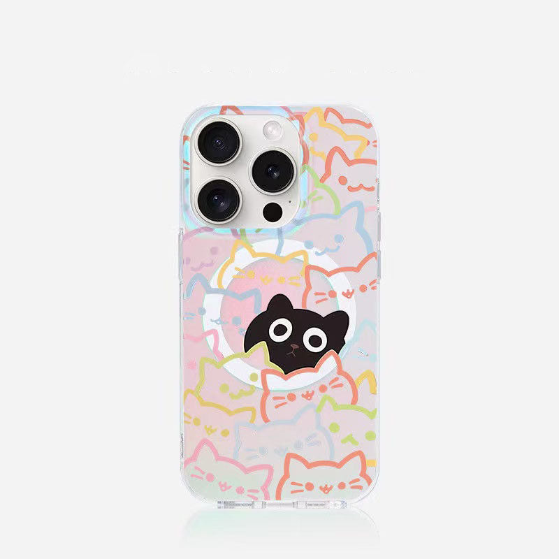 光の角度で虹色にきらめくレーザー炫彩を、色彩豊かな「レインボーキャット(彩虹猫)」柄が一層華やかに演出!強力なマグネットで瞬時に吸着・固定し、ワイヤレス充電にも支障なく対応。表面は耐指紋・耐スクラッチ加工で汚れがつきにくく、軽量素材が持ちやすさを確保しつつ、日常の小さな衝撃からスマホをしっかり守ります。iPhone16/15 シリーズなど主要機種に対応し、レーザーの幻想的な輝きと彩虹猫の明るい可愛さが融合して、あなたのスマホを陽気で個性的な雰囲気にします。