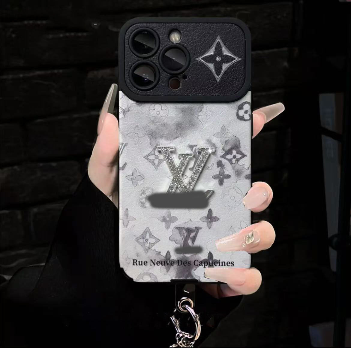 スマホケース 高級感 ストラップ付き ダブルV 耐衝撃・防振性能に優れ、高級感あふれるスマホケースで、iPhone11~17 に対応