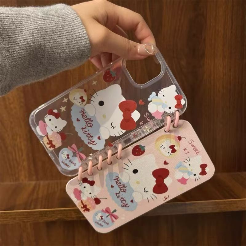 本型スマホケース ハローキティ テーマ 手帳型スマホケース キャラクターの柔らかい 折りたたみ式 ノート型 スマホケース iPhone に対応