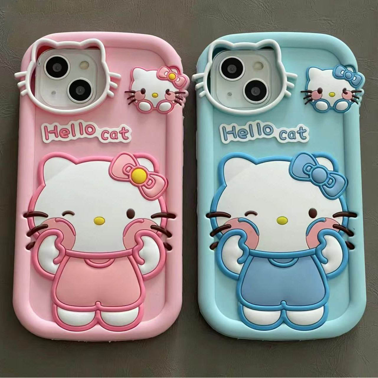 ピンチするだけで幸せが膨らむ!このスマホケースには立体的なハローキティの顔が付いており、ふわふわの素材で触るだけで癒されます。ピンチすると表情が変わり、ストレスが一掃されること間違いなし!