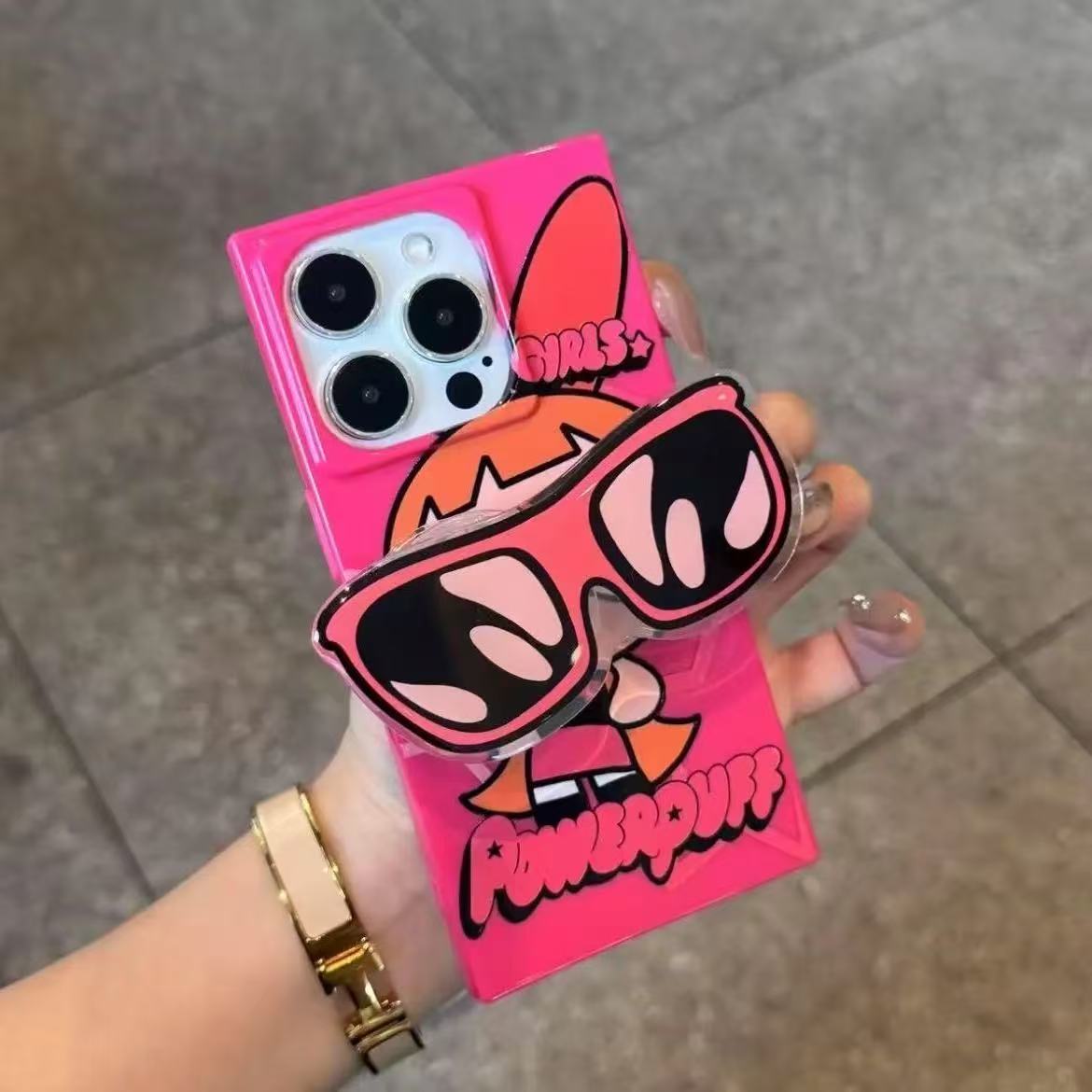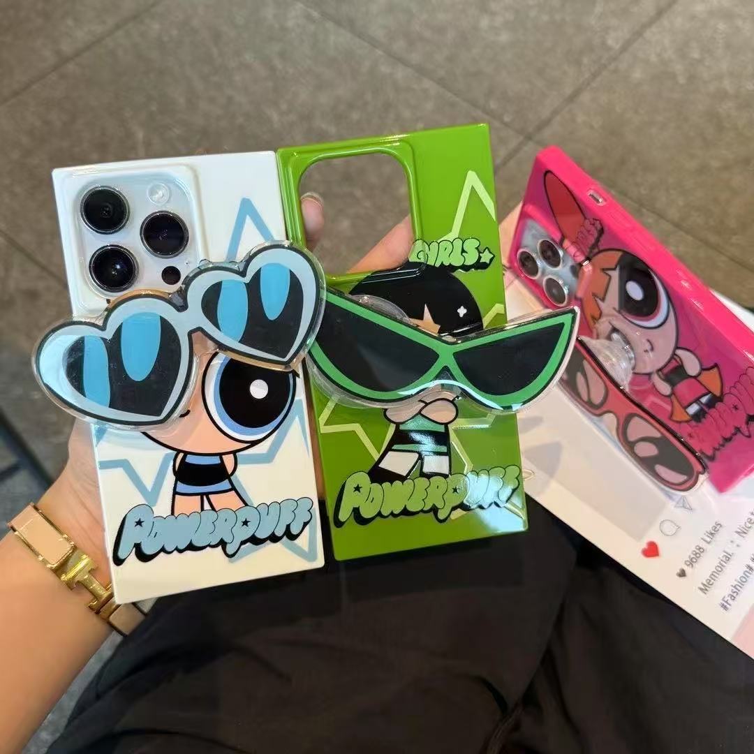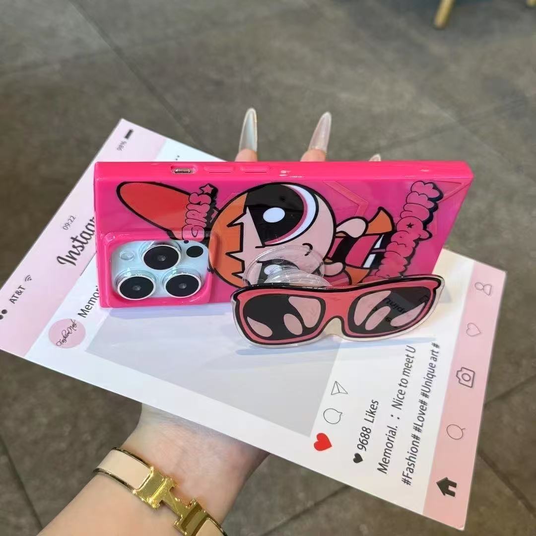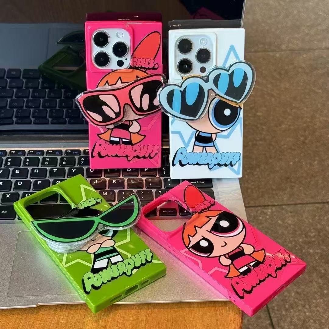 スマホケース パワーパフガールズをテーマ サングラス型のスタンドが付 耐衝撃・防振性能に優れ、高級感あふれるスマホケースで、iPhone に対応