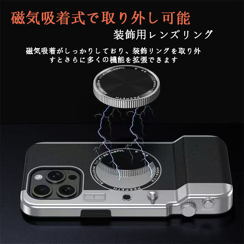 一体型プロカメラ風のスマホケースは、磁気吸着式で着脱が簡単です。化粧鏡が付いているので、外出時の補粧も手軽にできます。専門的なカメラのような质感を持ち、スマホを保護すると同時に、使い勝手と個性を高めることができます。