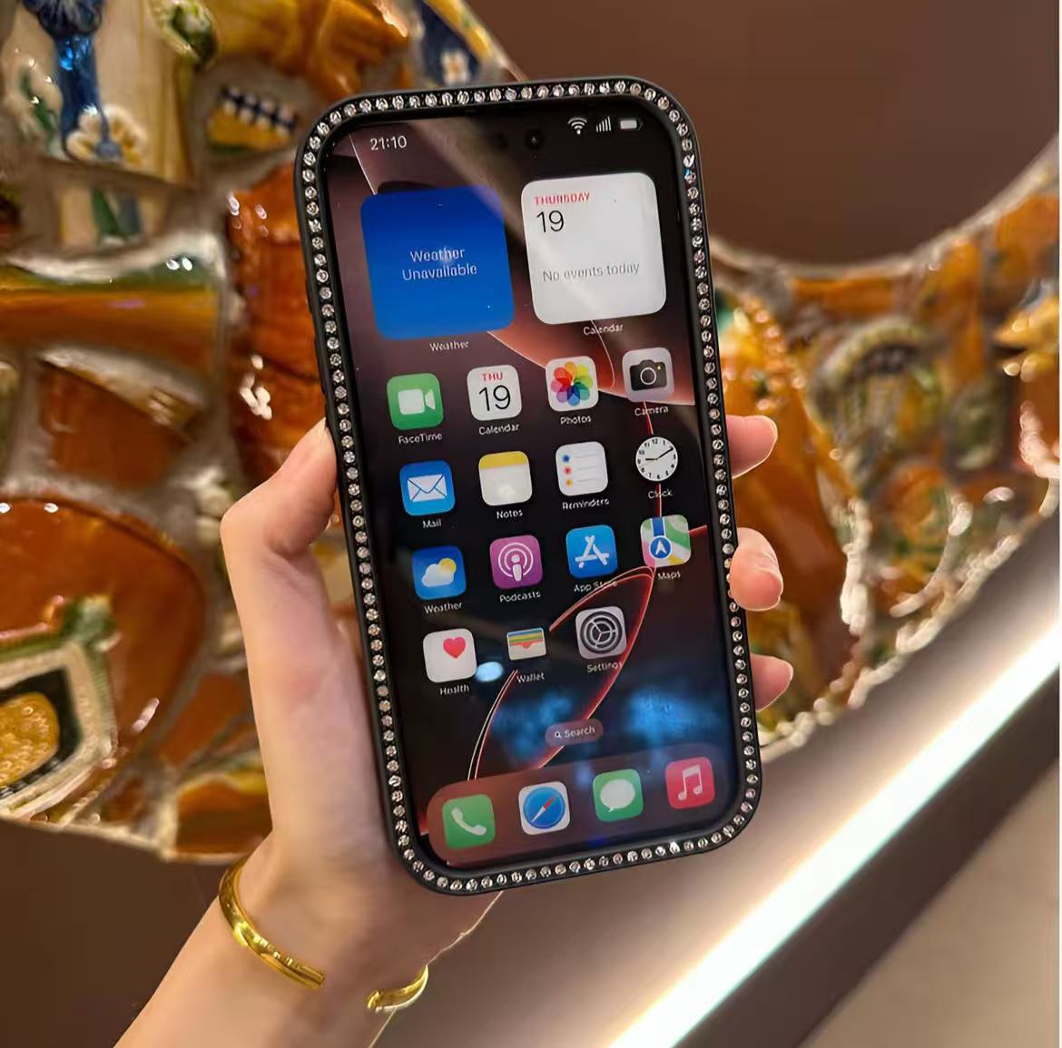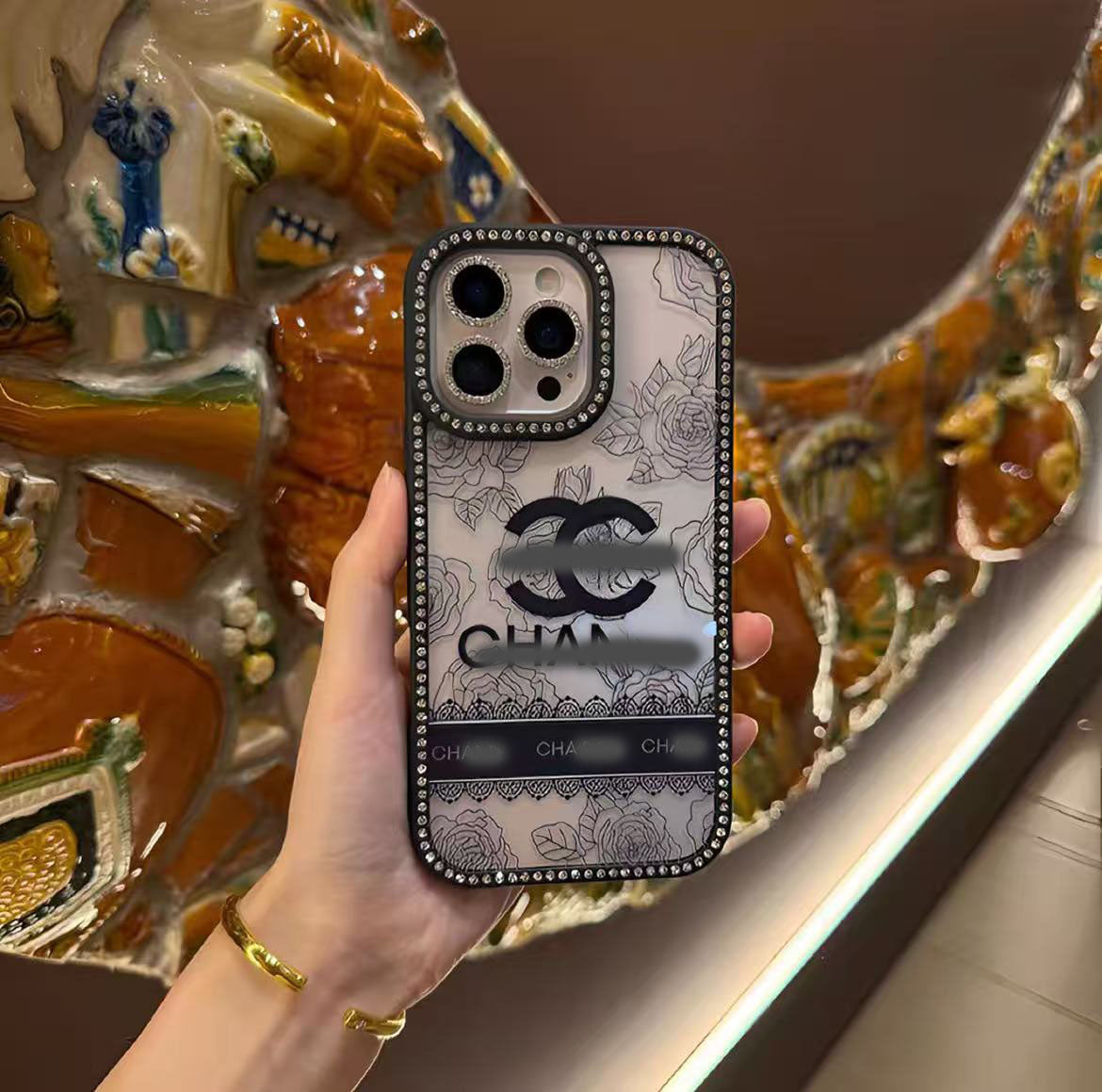 スマホケース 両面ダイヤモンドドット + ブレスレット ダブルC 耐衝撃・防振性能に優れ、高級感あふれるスマホケースで、iPhone11~17 に対応