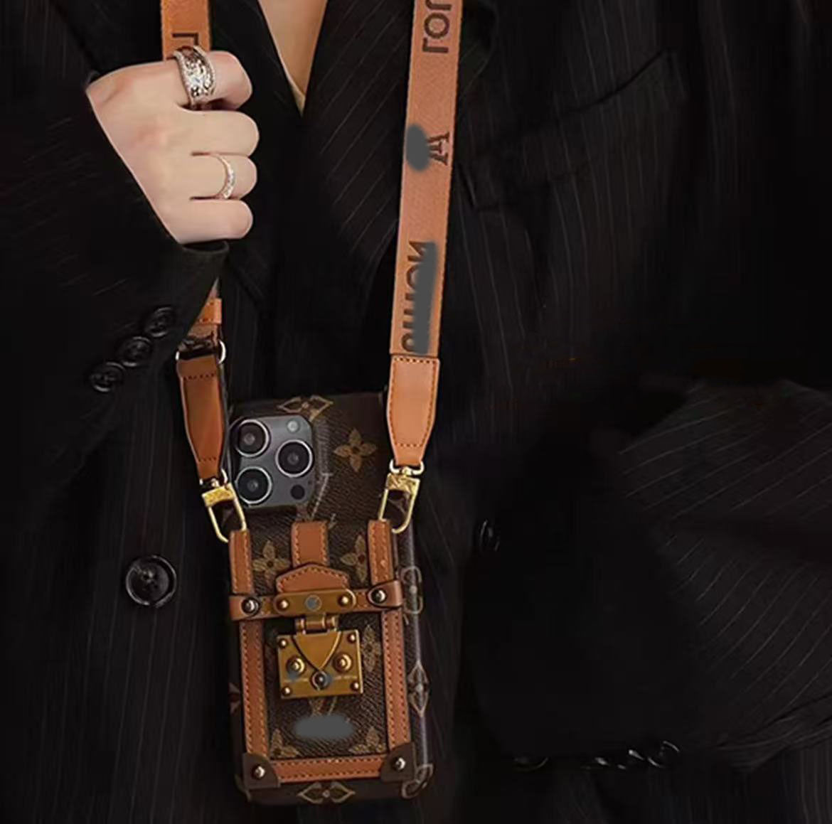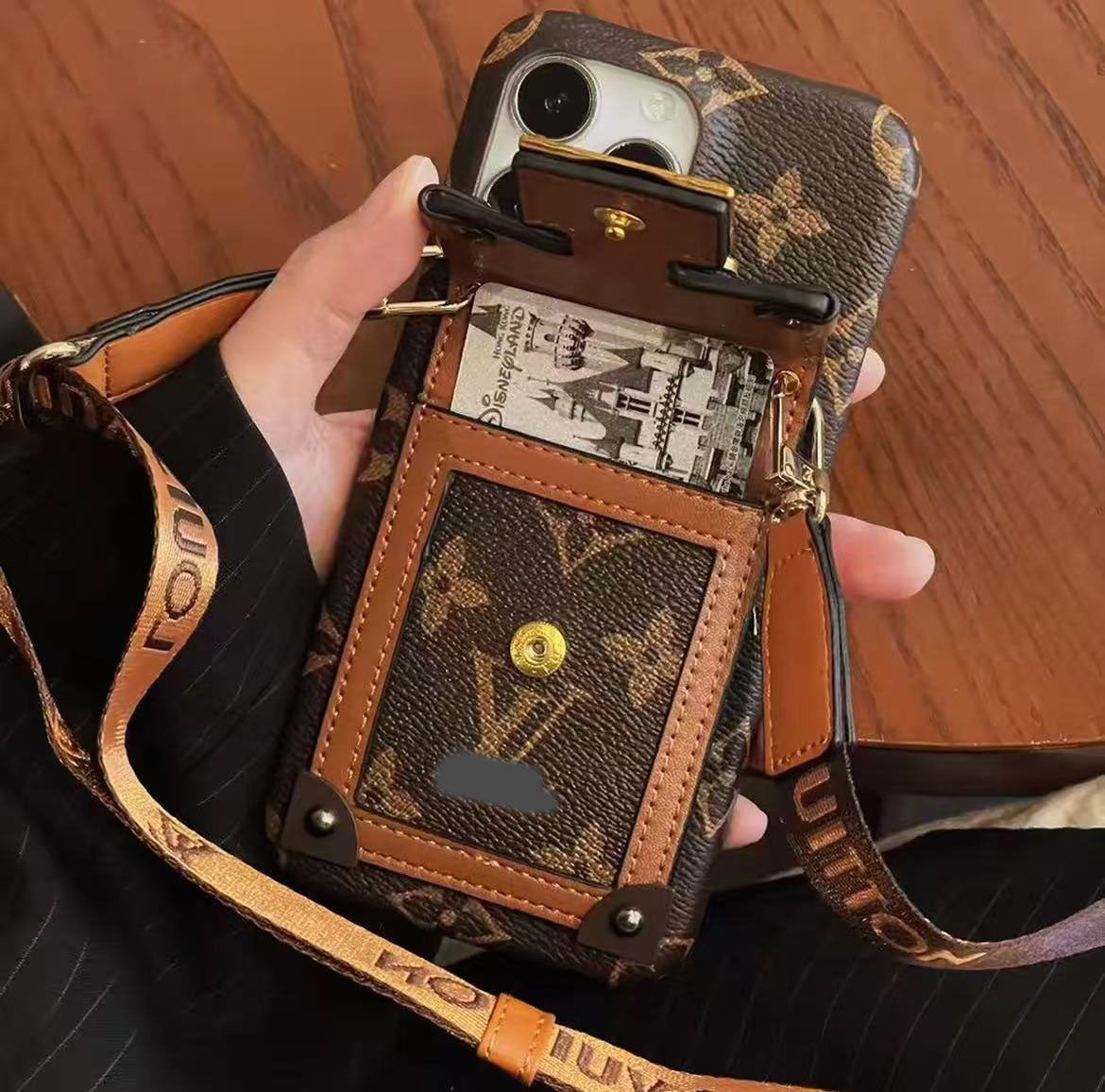 スマホケース 高級感カードホルダー付き・ストラップ付き ダブルV 耐衝撃・防振性能に優れ、高級感あふれるスマホケースで、iPhone13~17 に対応
