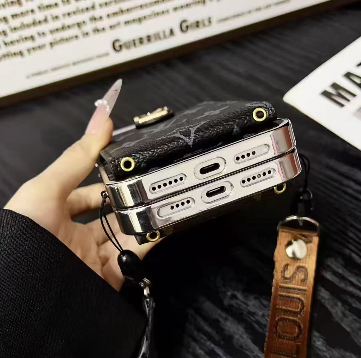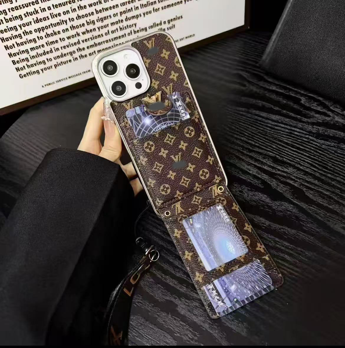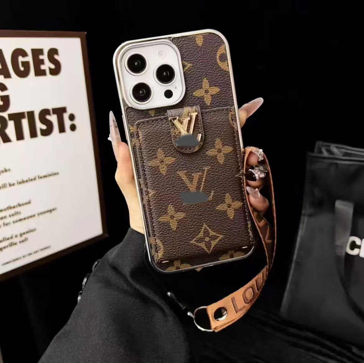 スマホケース 高級感カードホルダー付き ダブルV ストラップ付き 耐衝撃・防振性能に優れ、高級感あふれるスマホケースで、iPhone13~16 に対応