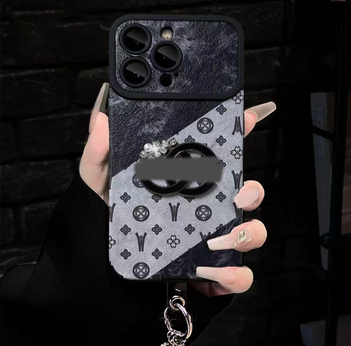 スマホケース 高級感ブレスレットを付き ダブルC 耐衝撃・防振性能に優れ、高級感あふれるスマホケースで、iPhone11~17 に対応