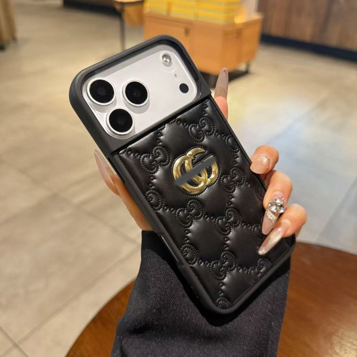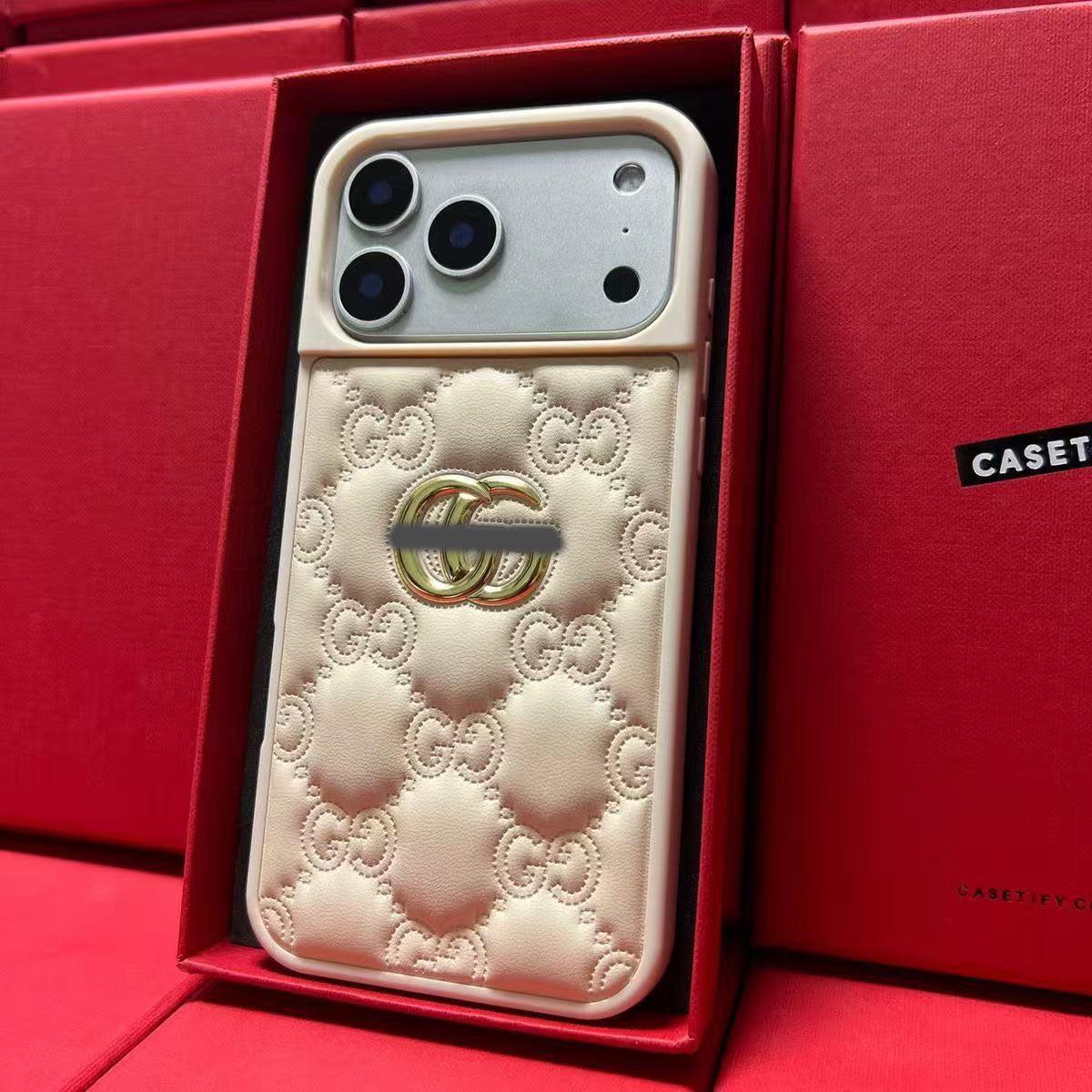 スマホケース 高級感レザーエンボス ダブルG 耐衝撃・防振性能に優れ、高級感あふれるスマホケースで、iPhone13~17 に対応