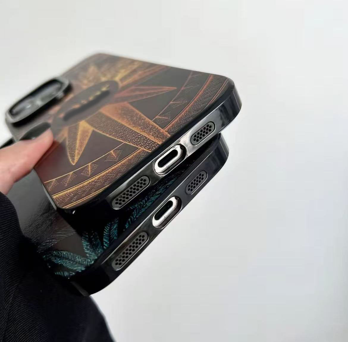 スマホケース 高級感太陽の花 ダブルDi** 耐衝撃・防振性能に優れ、高級感あふれるスマホケースで、iPhone12~16 に対応