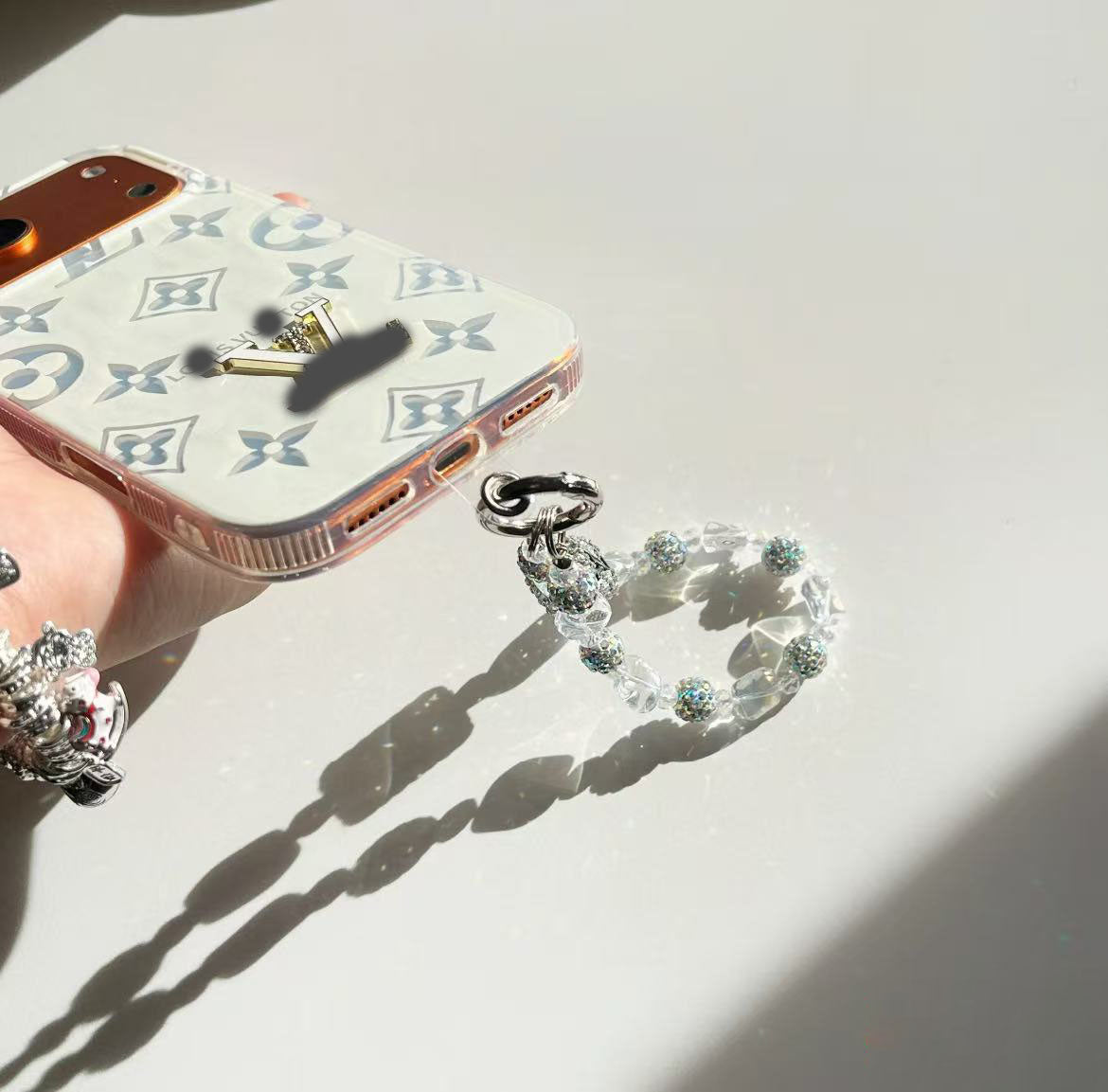 スマホケース 高級感月光白スマホケース ダブルV 耐衝撃・防振性能に優れ、高級感あふれるスマホケースで、iPhone12~17 に対応