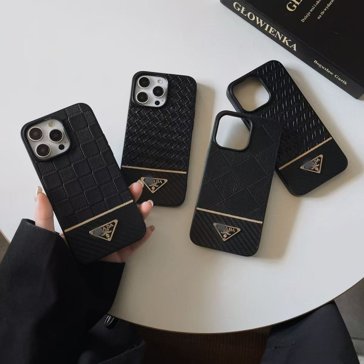 スマホケース 高級感編み目柄スマホケース ダブルPRA** 耐衝撃・防振性能に優れ、高級感あふれるスマホケースで、iPhone12~17 に対応