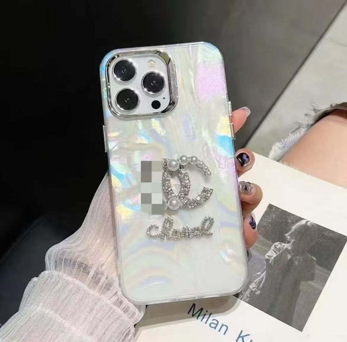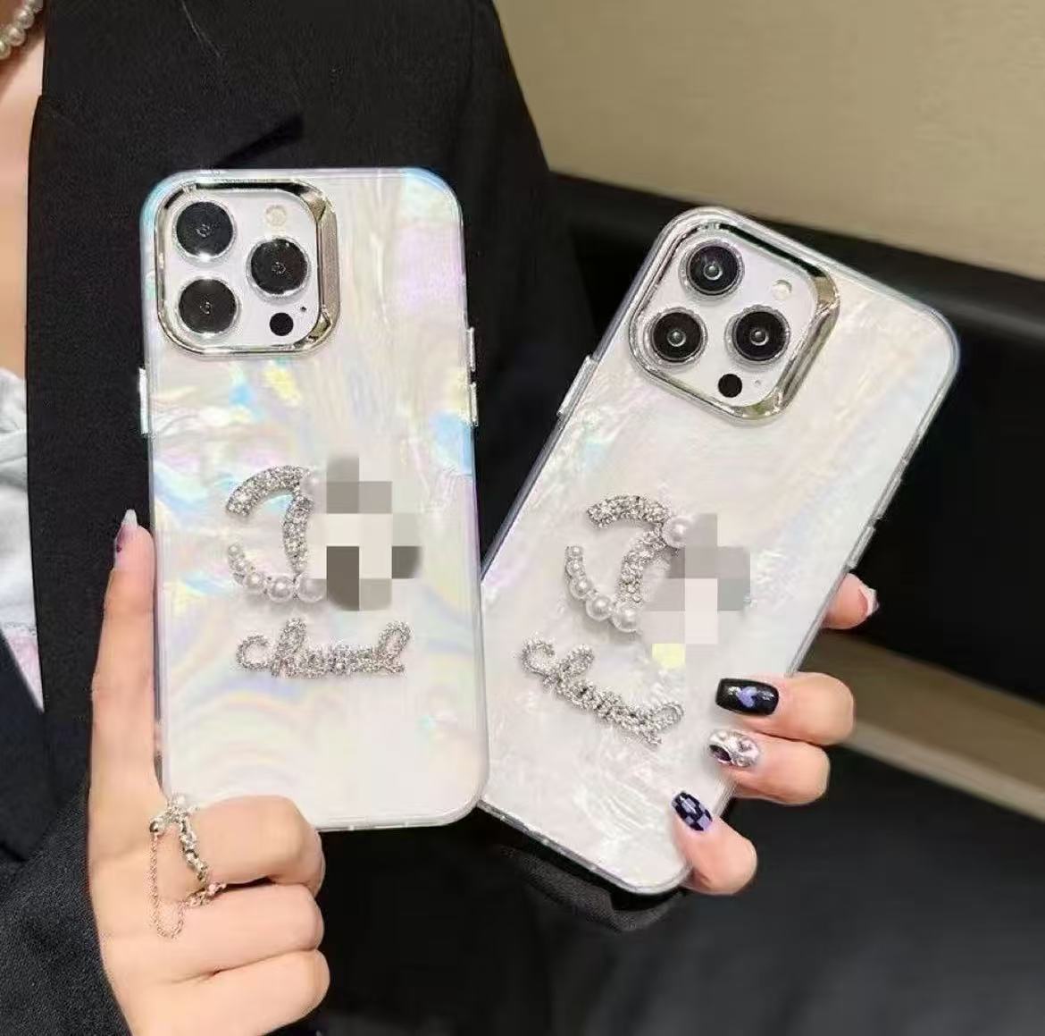スマホケース 高級感貝殻グリッター ダブルC 耐衝撃・防振性能に優れ、高級感あふれるスマホケースで、iPhone12~17 に対応