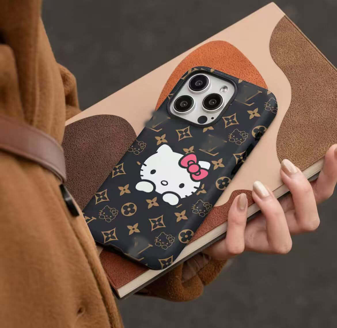 スマホケース 高級感 ハローキティ ダブルV 耐衝撃・防振性能に優れ、高級感あふれるスマホケースで、iPhone7~17 に対応