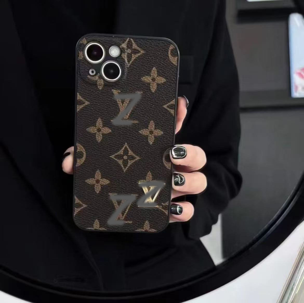 スマホケース 高級感 金属製のマークが付い ダブルV 耐衝撃・防振性能に優れ、高級感あふれるスマホケースで、iPhone に対応
