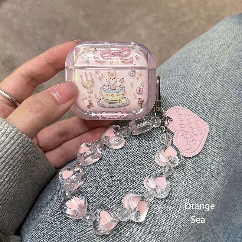 見た瞬間に心をつかむ、ティーカップラビットデザインのイヤホンケースが登場!可愛いウサギが、温かいティーカップの中にのびのびとくつろいでいるようなデザインです。淡いピンクや白の配色が、優しくて癒し系の雰囲気をたっぷりと醸し出します。