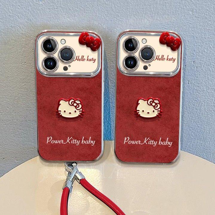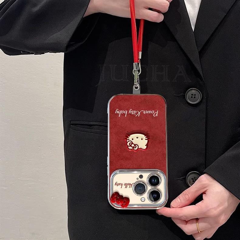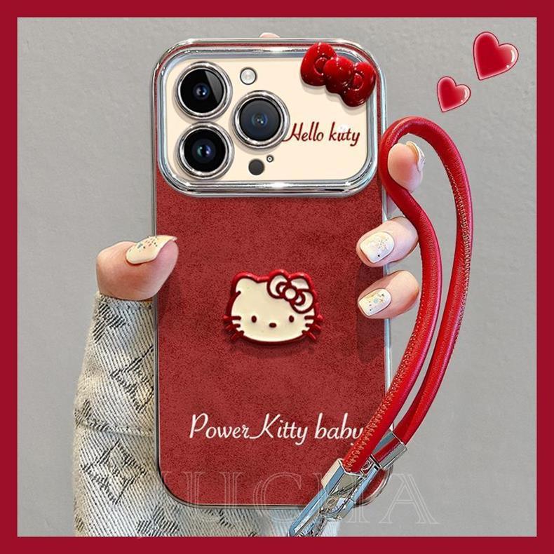 蝶結び Hello Kitty デザイン 高級感 あふれる 紐付き シリコンス マホケース iPhone に対応