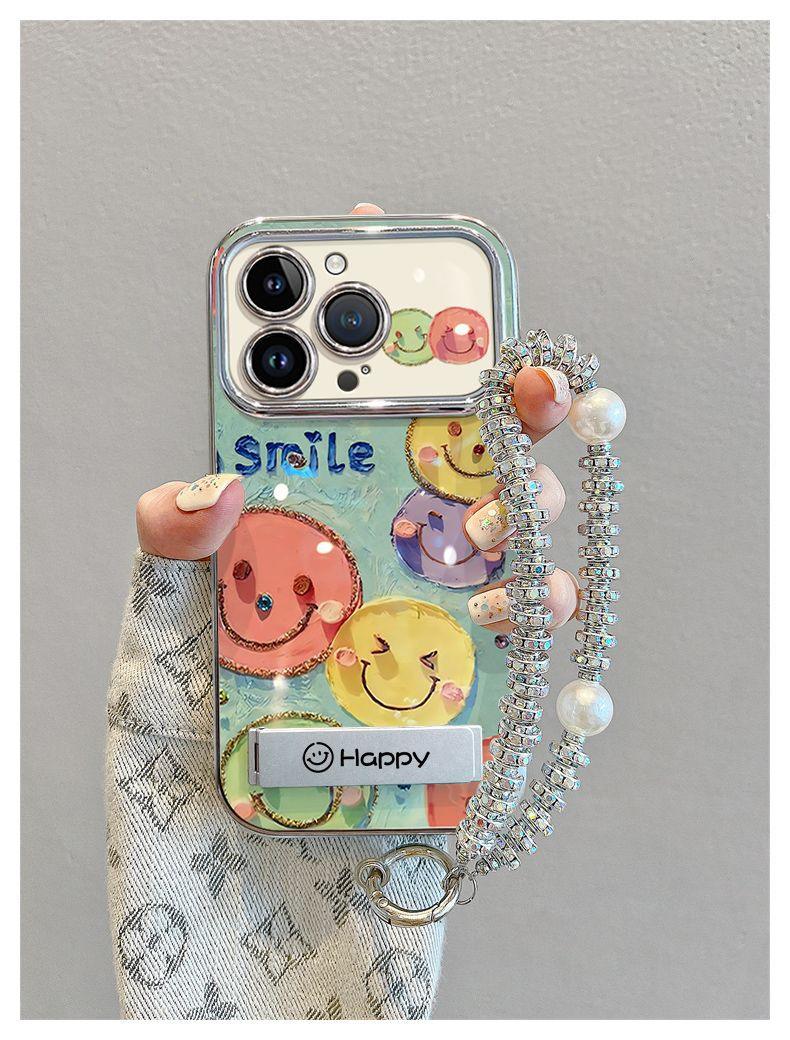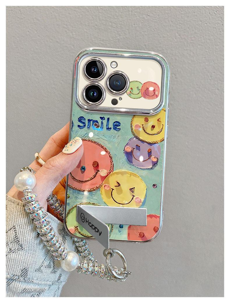 油絵の笑顔 デザイン 高級感あふれる 紐付き スタンド付き スマホケース iPhone に対応