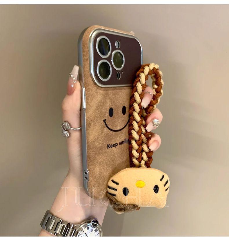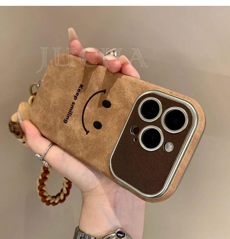 笑顔 デザイン 高級感あふれる 紐付き スマホケース iPhone に対応