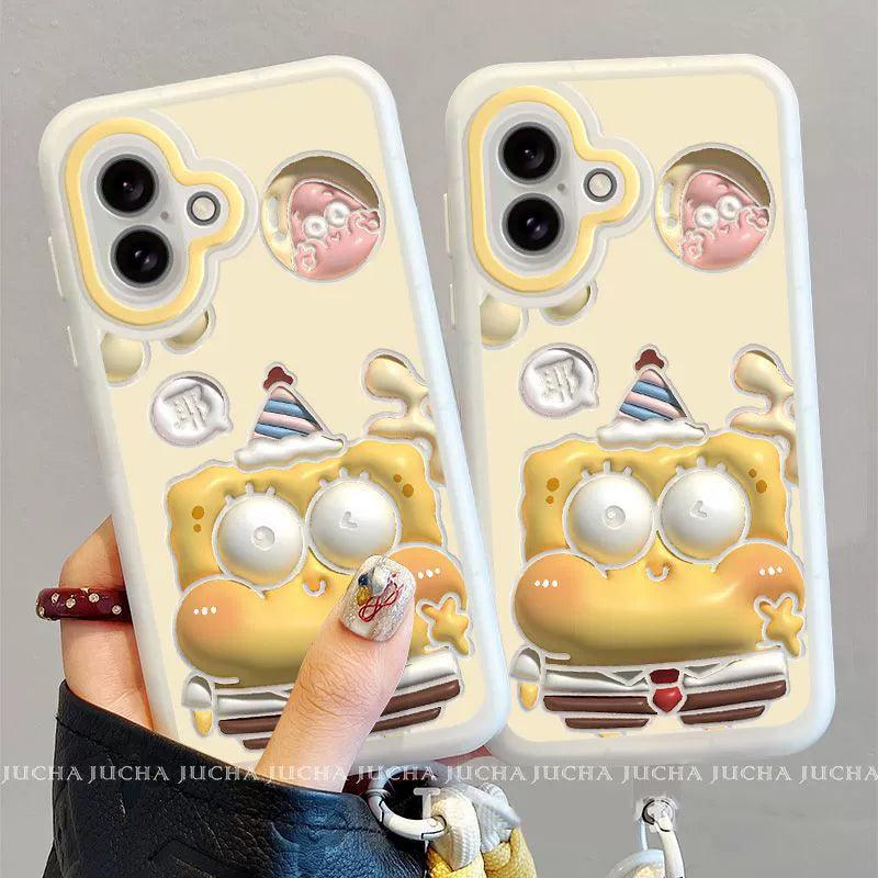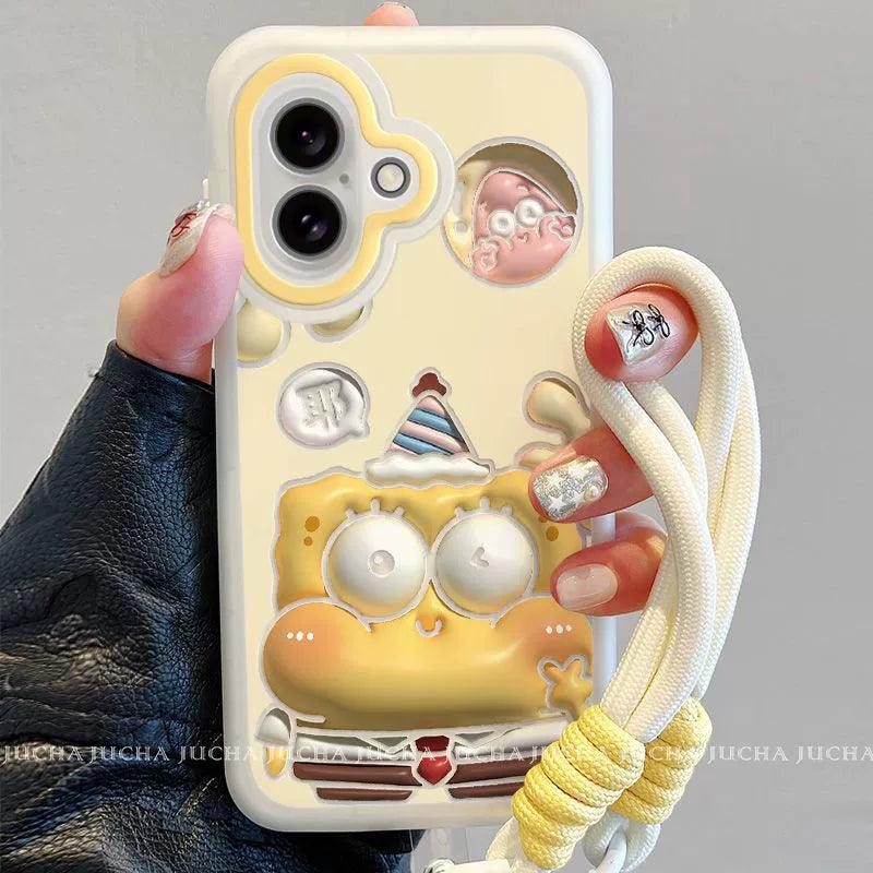 スポンジボブ デザイン 高級感あふれる 紐付き スマホケース iPhone に対応