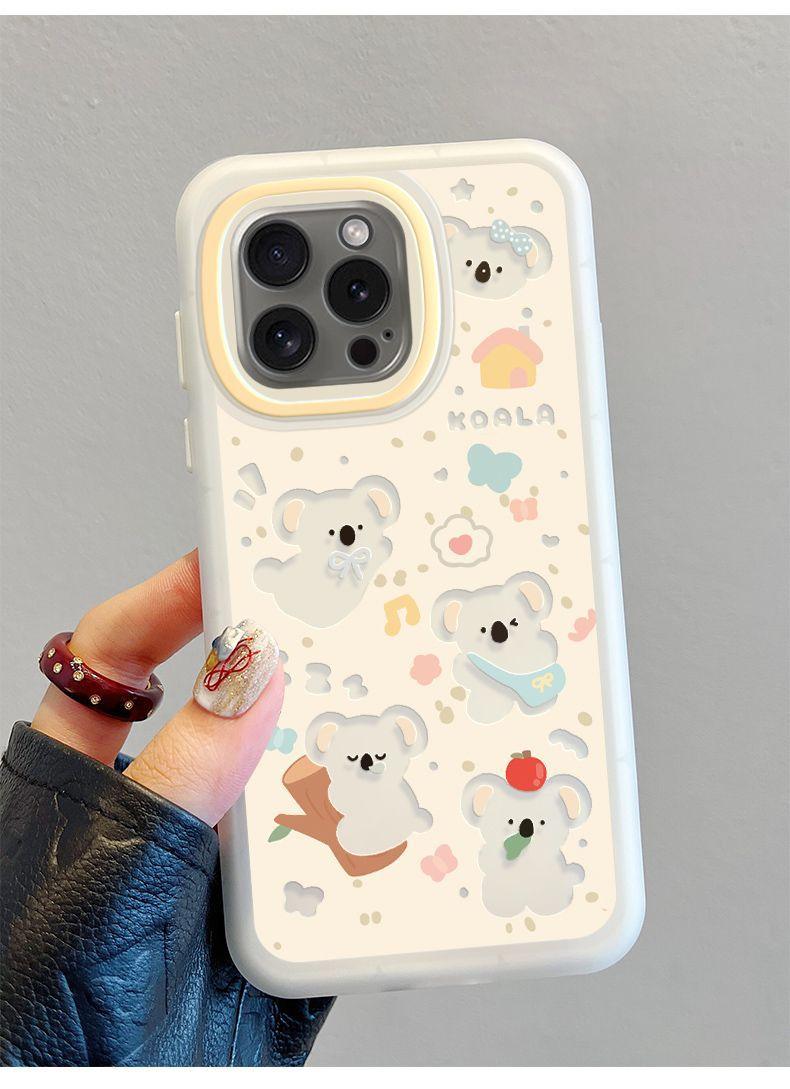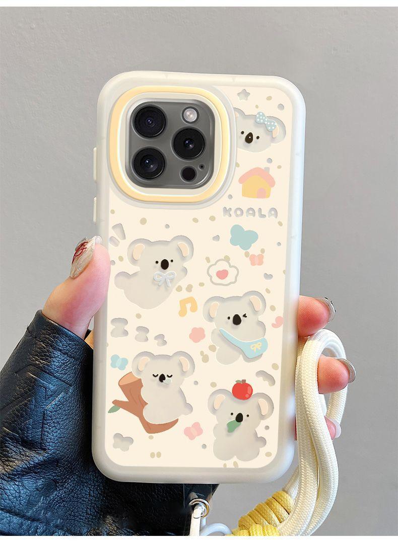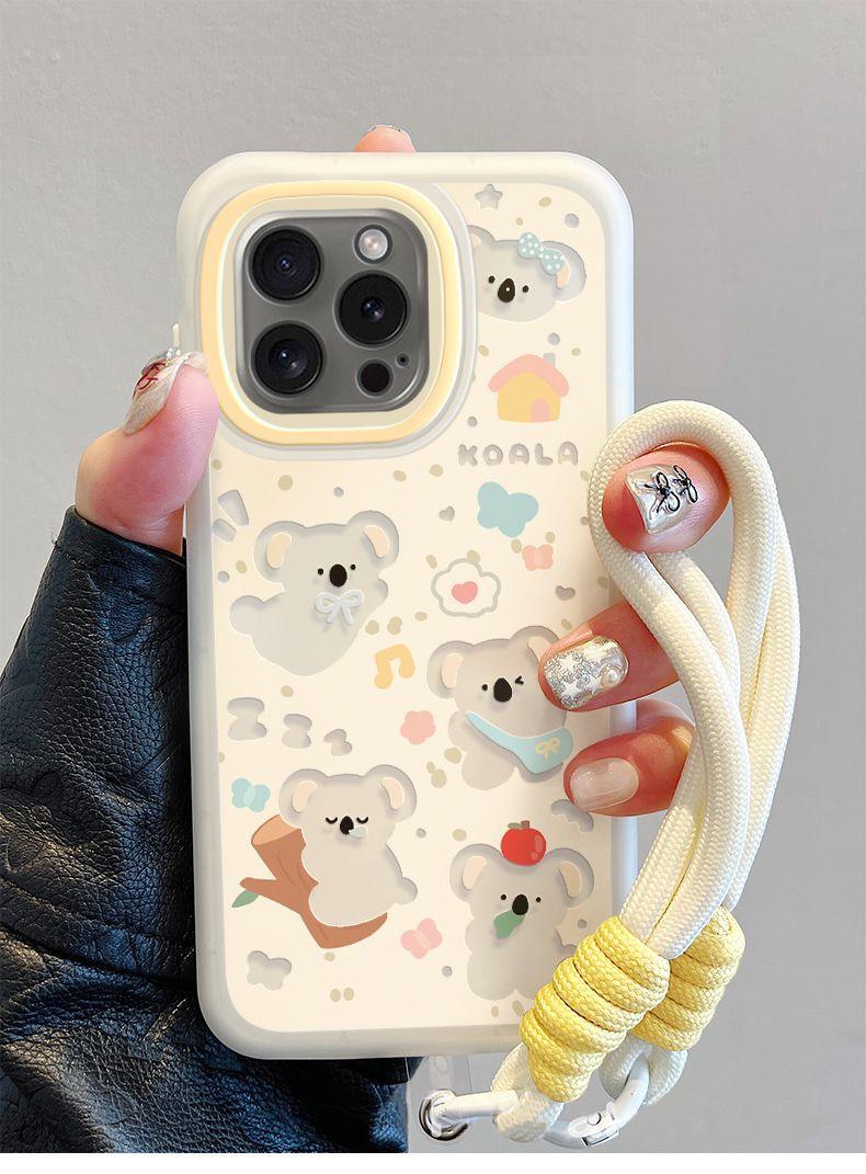 透かし彫りのコアラ デザイン 高級感あふれる 紐付き スマホケース、iPhone に対応