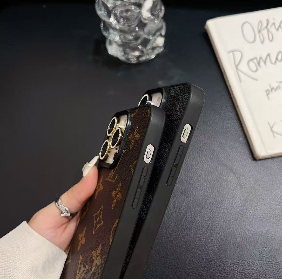 スマホケース 高級感黒ロゴ ダブルV 耐衝撃・防振性能に優れ、高級感あふれるスマホケースで、iPhone12~16 に対応