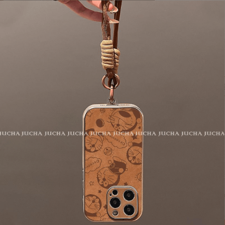 ドラえもん デザイン 、耐衝撃・防振性能に優れ、高級感あふれる紐付きスマホケースで、iPhone に対応