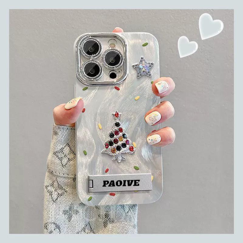 立体クリスマスツリー 高級感あふれる 紐付き スタンド付き スマホケース iPhone に対応