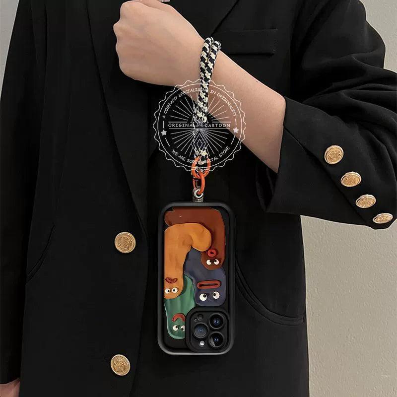 4匹の目を見開いた虫のユニークなデザインが施された、高級感あふれるスマホケースが登場!このケースは iPhone に完璧に対応しており、個性的なデザインであなたのスマホを際立たせます。付属の紐は、持ち運びが便利で、スマホを落とす心配を軽減します。さらに、高い防振・耐衝撃性能を備えており、日常の落下や振動からスマホをしっかりと守り、安心して使用できます。個性的で機能的なスマホケースを探している方には、ぜひお試しください!