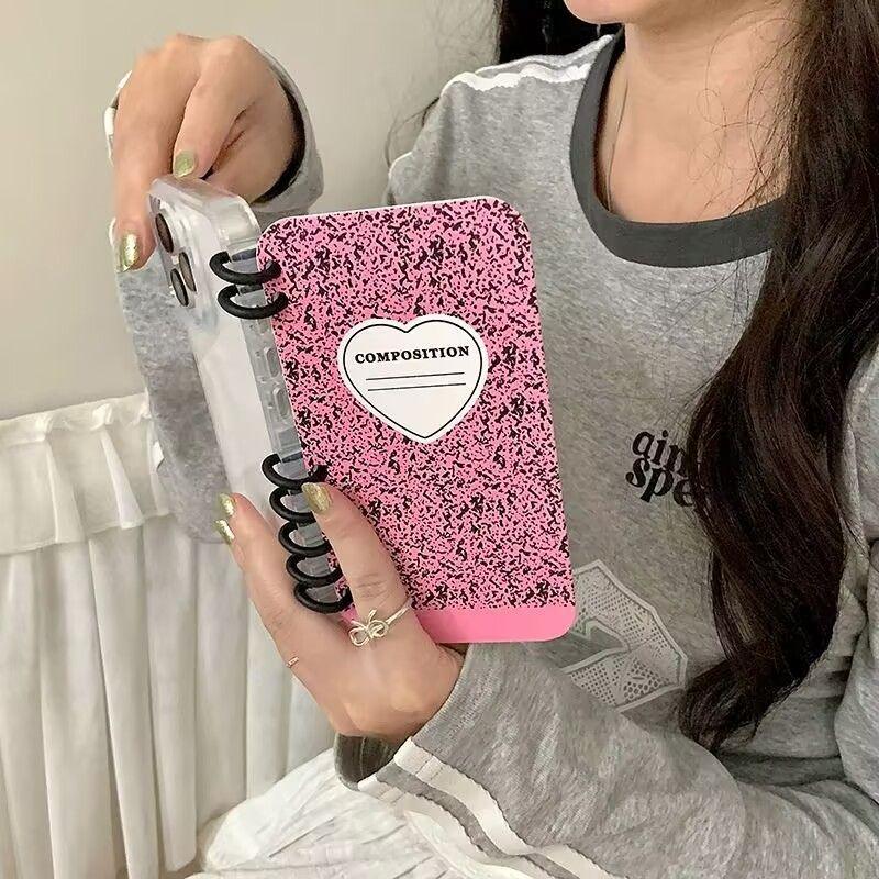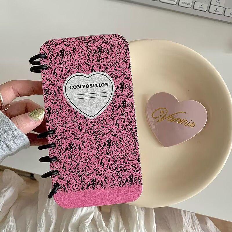 本型スマホケース ハートテーマ 手帳型スマホケース キャラクターの柔らかい 折りたたみ式 ノート型 スマホケース iPhone に対応