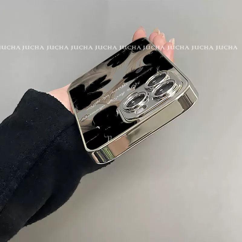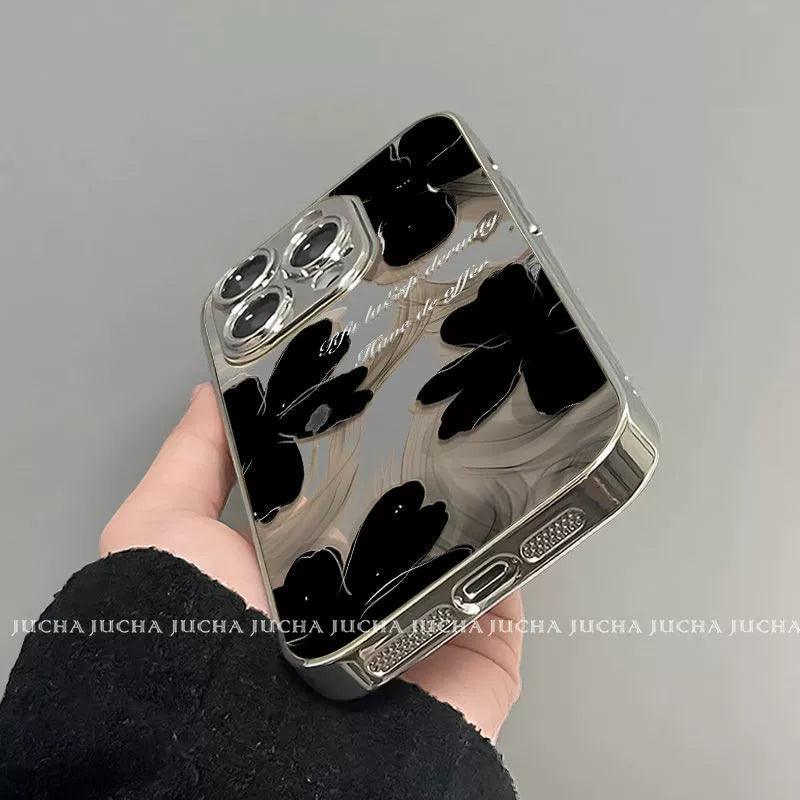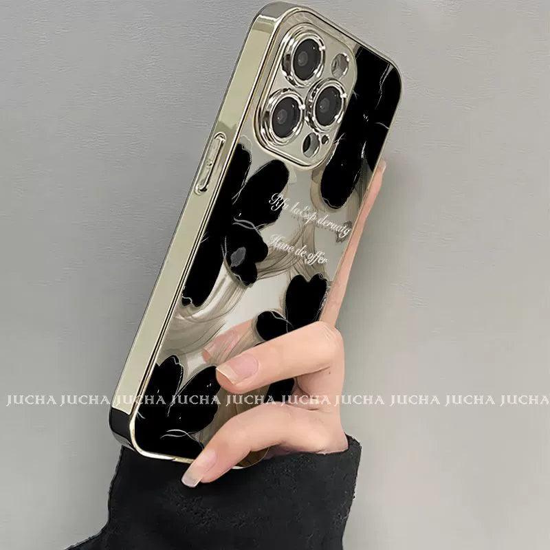 黒色の水墨花柄 高級感あふれる スマホケース iPhone に対応