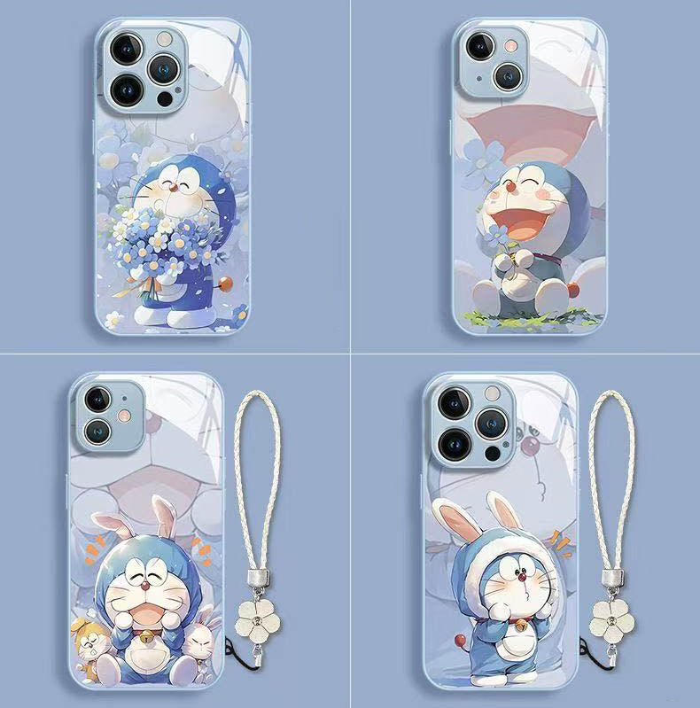 スマホケース 液状ガラスドラえもんテーマ、紐付き 耐衝撃・防振性能に優れ、高級感あふれるスマホケースで、iPhone に対応