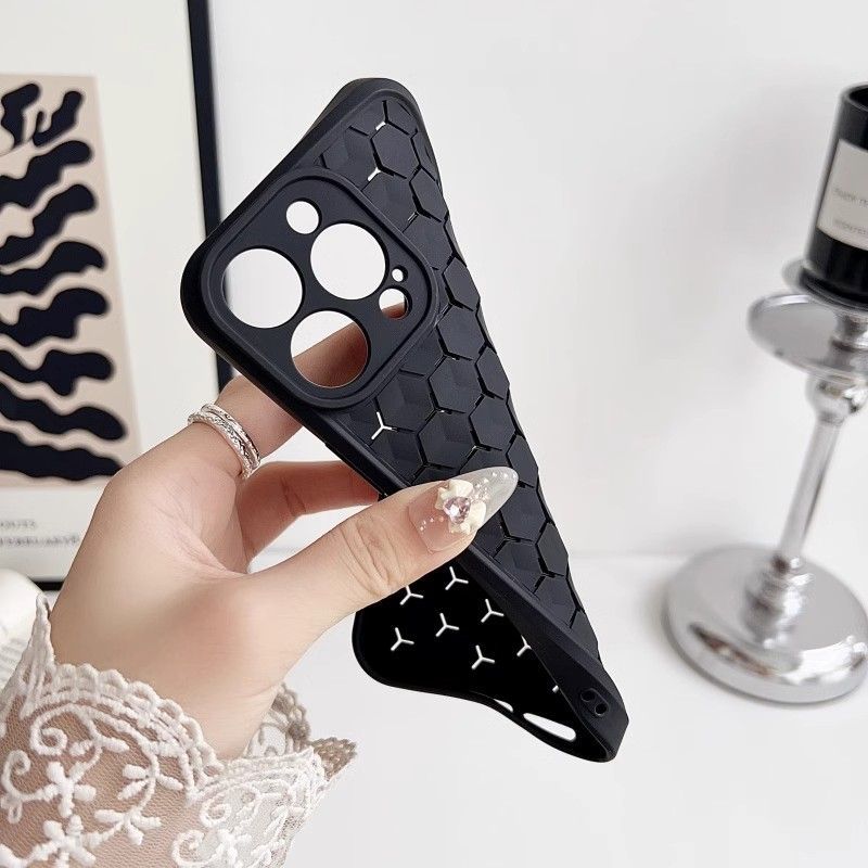 秋葉原のテクノロジーと快適性が融合した、透気性と放熱性能を兼ね備えたシリコーンケースです!柔らかい食品級シリコーン素材に、精密なハニカム格子を立体的に成型。表面の多数の微細通気孔が空気の流れを促進し、長時間のゲームプレイや動画視聴時のスマホの発熱を効果的に抑制します。同時に、ハニカム構造は指紋を残しにくく、滑りにくい触感で握り心地を向上させています。