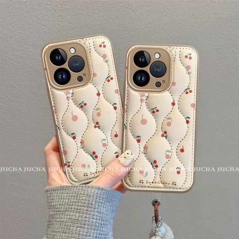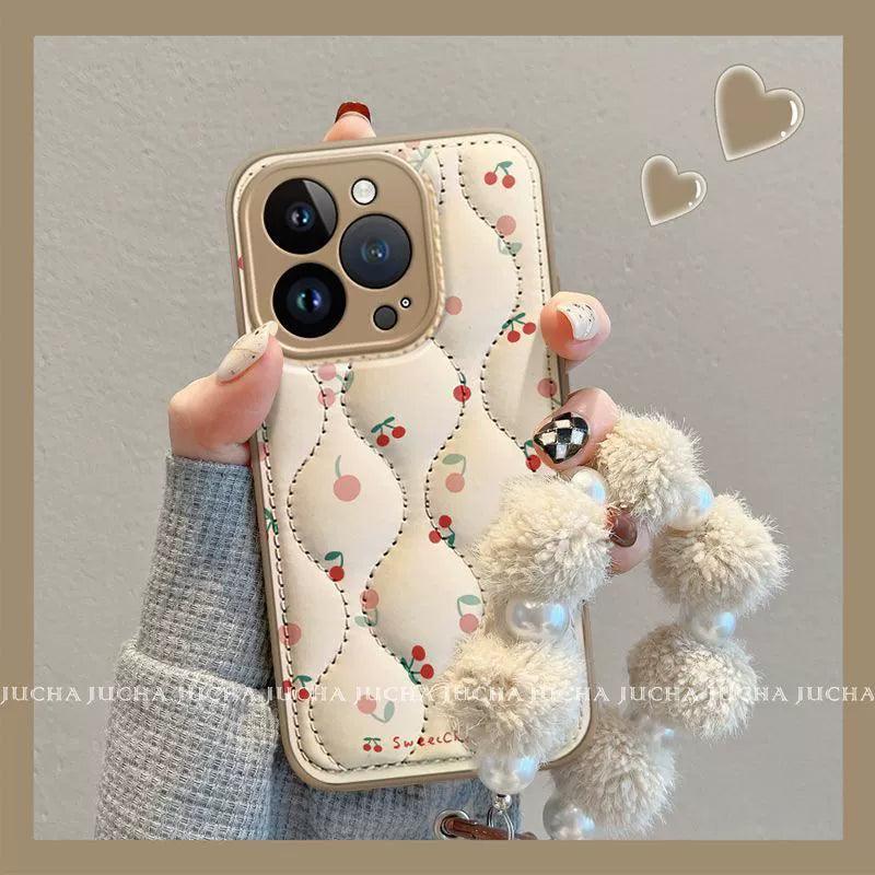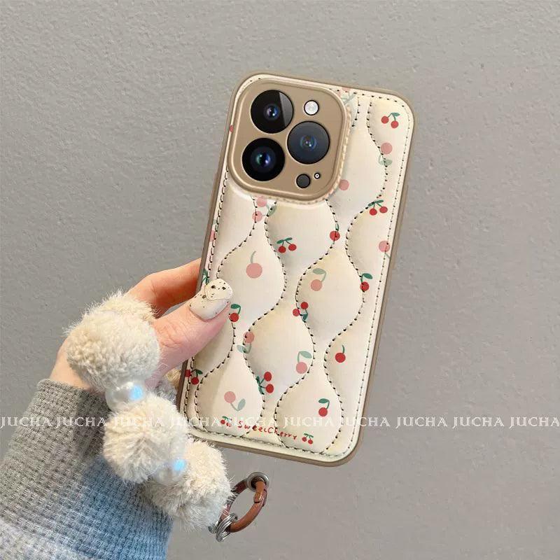桜桃デザイン 高級感あふれる 紐付き スマホケース iPhone に対応